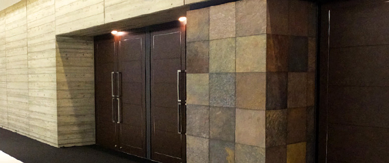 黒雲母の大胆な紋様が金属質で重厚感ある割れ肌 屋内外の床材・壁材に適用、照明との相性も好適