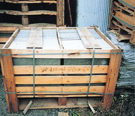 石材は重量物のため、時として荷崩れを起こし、材料の割れ・カケなどの損傷を引き起こします。厳選した自然石材を、時間や労力を惜しまず遠い国から輸入しても、クレートやパレットが粗悪だったり、形が特殊で移動中に材料が破損してしまう場合があります。それは国内移動の場合でも同様です。